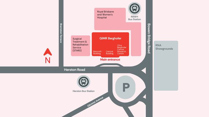 Central to a collaborative health precinct and Queensland’s economic heartland, QIMR Berghofer is located next to the Royal Brisbane and Women’s Hospital within the Herston Health Precinct.