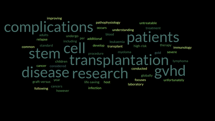 Research conducted by the Transplantation Immunology Laboratory focuses on improving our understanding of the pathophysiology of complications following stem cell transplantation. Using unique pre-clinical models combined with innovative technologies, the group aims to define the immunological mechanisms that underpin these complex disease processes, with the view of translating the basic research findings into clinical practice.